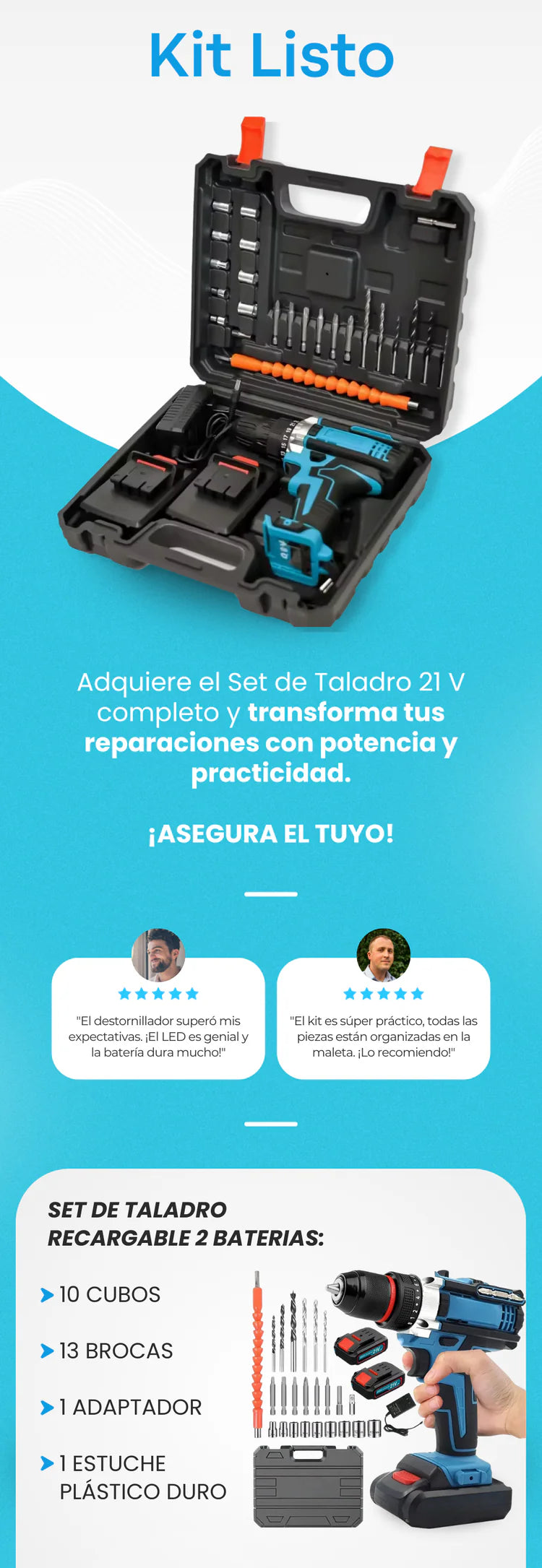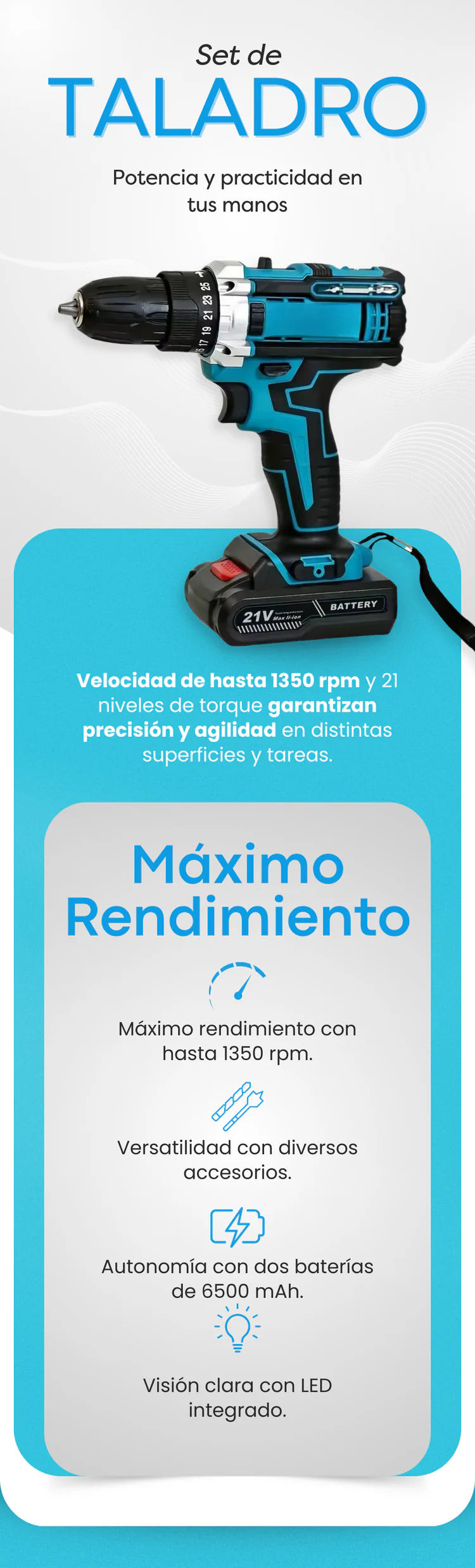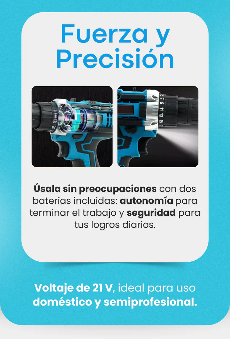 KIT TALADRO INALÁMBRICO CON PISTOLA DE IMPACTO + 26 ACCESORIOS + 2 BATERIAS REGALO